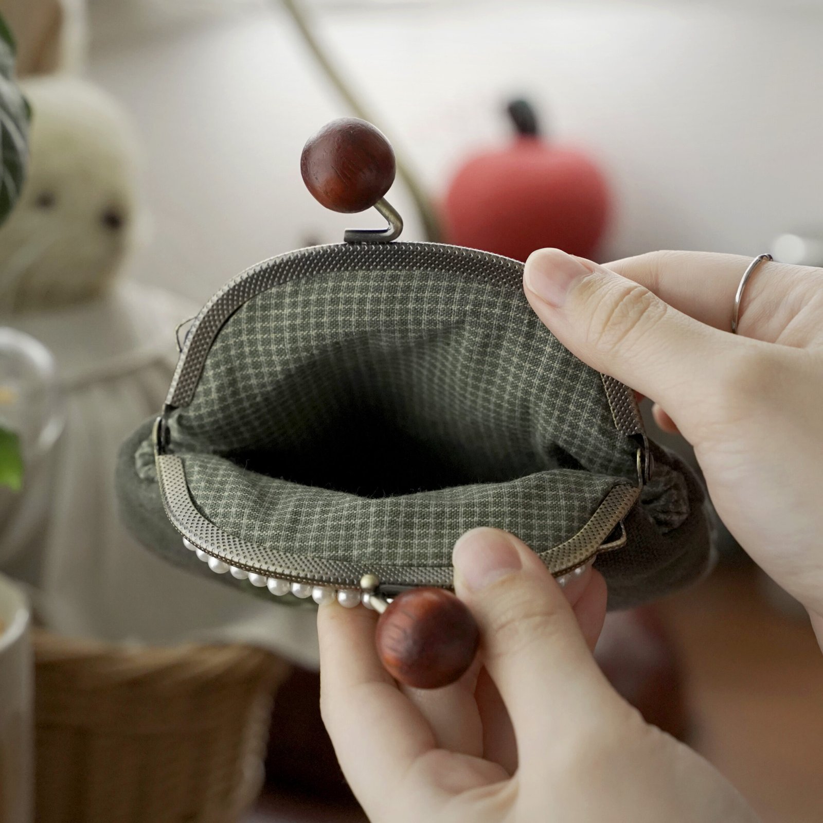 材質 日本製棉布、先染布、口金、繡線